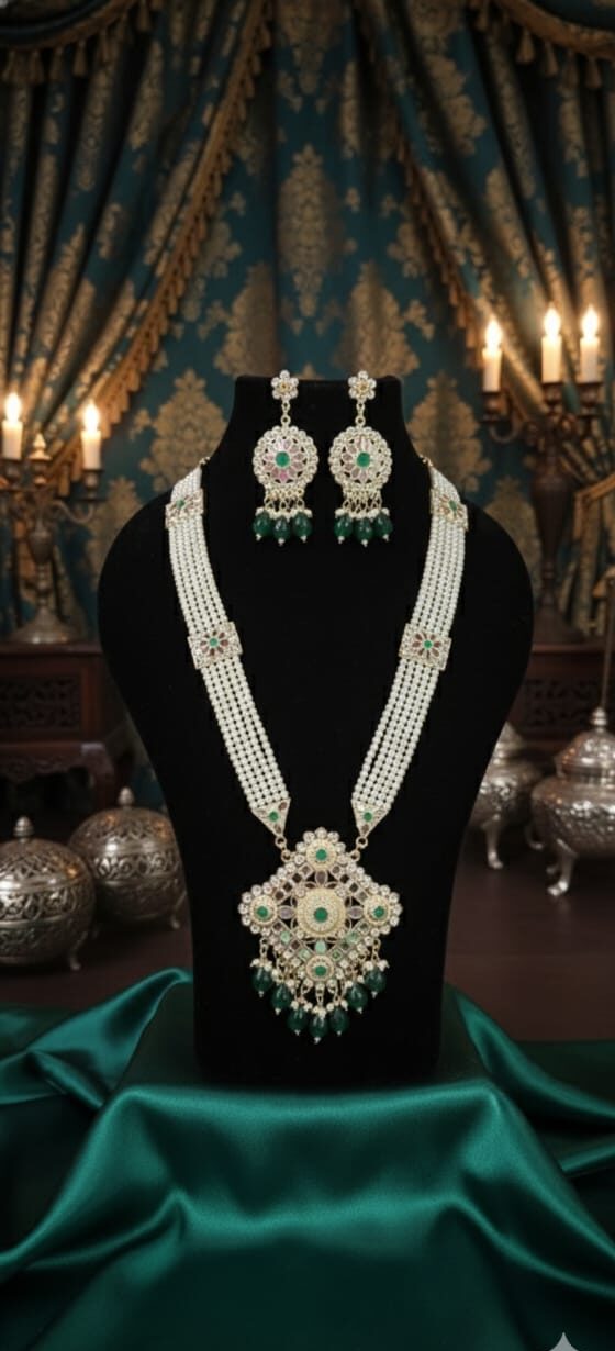A symbol of regal beauty and grandeur traditional Rani haar features intricate design and precious stones